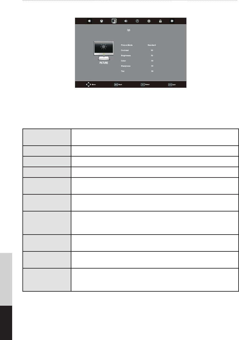 3. Trykk på -knappene for å velge alternativet du vil justere i BILDE-menyen.