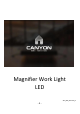 Dear Customer Thank you to purchase our LED Magnifier Work Light. Our distortion-free lens and a circleline LED that provides 360 degree of shadow-free light. This product equipped with safety features. Nevertheless, read the safety warnings carefully and only use the product as described in these instructions to avoid accidental injury or damage. Keep this manual for further reference. If you pass this product on to someone else, remember to give them these instruction.