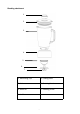 Blending attachment 1. 2. 3. 4. 5. 6. 7. 1. Measuring Cup 5. Cutting Plate 2. Lid 6. Rotating blade 3. Glass Jar 7. Rotating screw 4.