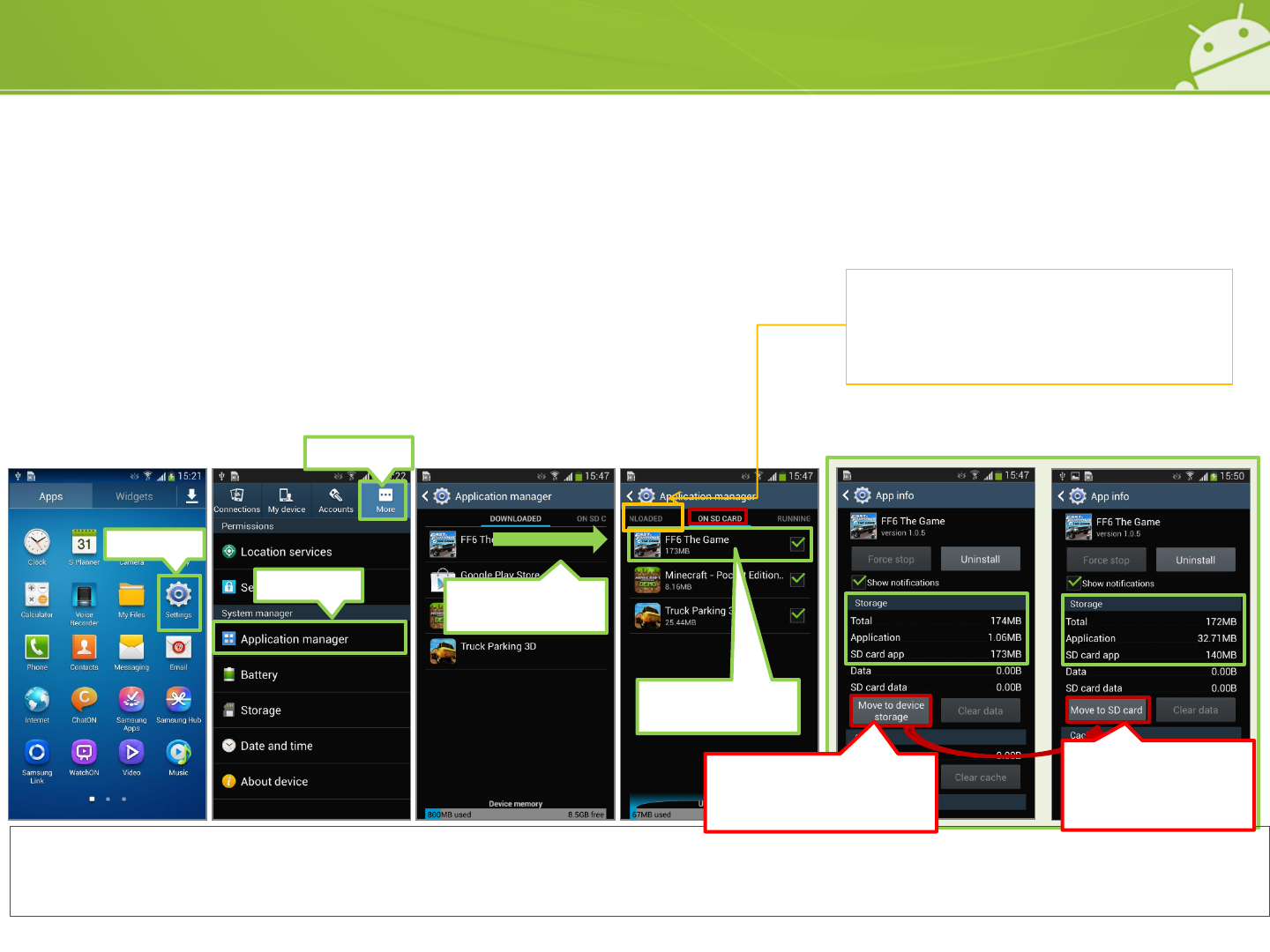 Note: Not all applications can be moved to an external SD card. Where a downloaded application supports this function , you