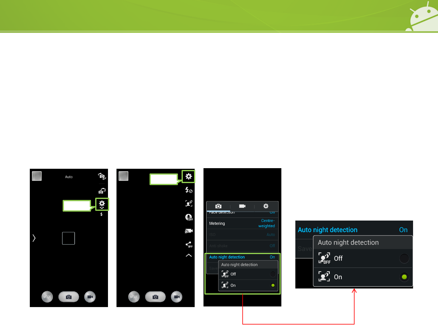 “Auto night detection” mode sets the device to automatically detect darker conditions