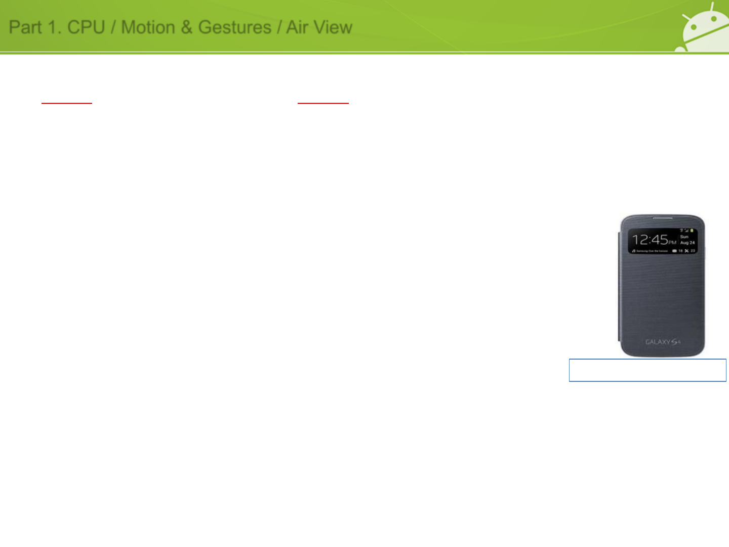 Quad(“Big”) and low power Cortex A7 processor 1.2GHz Quad (“Little”). The Galaxy S4 uses the “big”-core or the “little”-