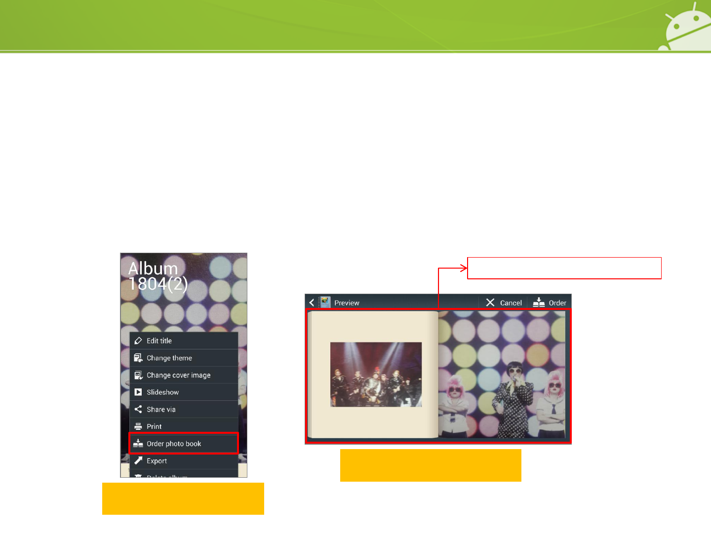 “Order photo book” submenu