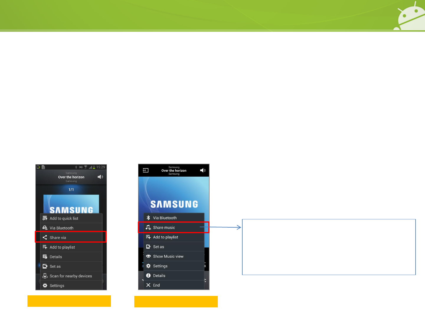 ※Reference : “Share via” option in Music player was removed from the Galaxy S4.