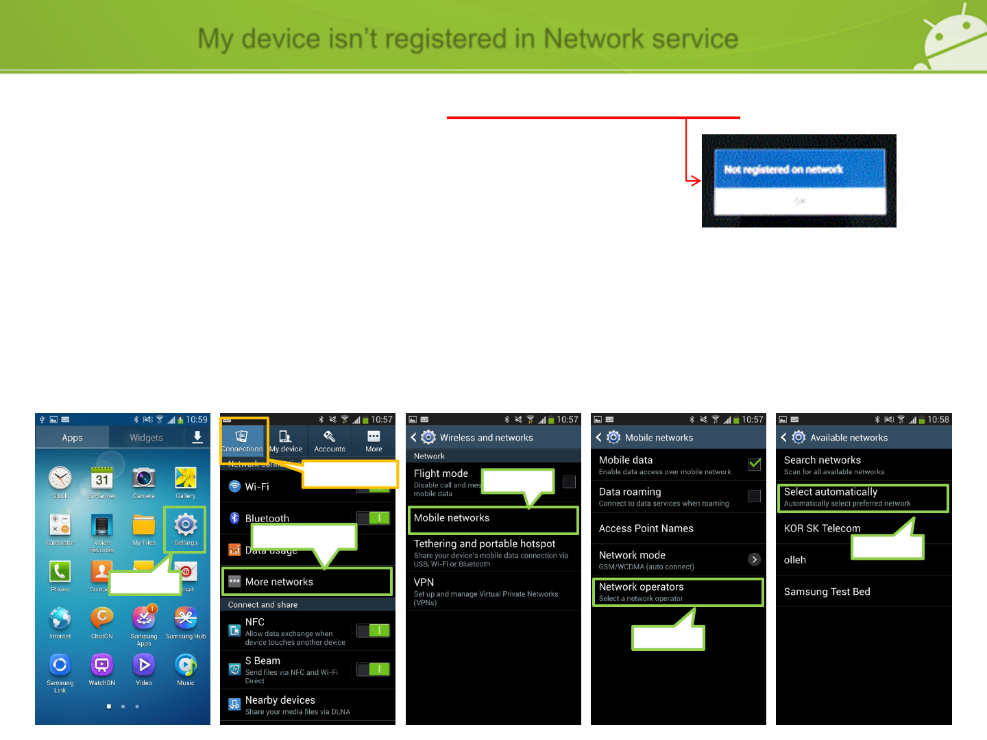 Q : Although network signal is good in my Galaxy S4, my device isn’t registered on the Network and I can’t make a call.