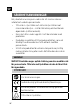EN CHARGING 1. Put the USB charger cable in the charging port (mini-USB) on the back of the product. 2. Connect the other end of the USB charger cable to a USB charger (sold separately), a computer USB port or the equivalent. The charge status is shown on the battery indicator. NOTE: The product cannot be used when charging is in progress. NOTE: The battery is only partially charged on delivery. The battery must be fully charged with the supplied USB charger cable before using for the first time.