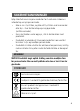 SV SÄKERHETSANVISNINGAR Följ säkerhetsanvisningarna nedan för att minska riskerna i arbetet och undvika personskada. • Titta inte in i ljusstrålen och rikta inte ljusstrålen mot människor eller djur – risk för bländning och bestående ögonskada (näthinneskada). • Barn ska hållas under uppsikt så att de inte leker med produkten. • Produkten innehåller ett litiumpolymerbatteri, som vid felaktigt handhavande kan fatta eld och medföra personskada.