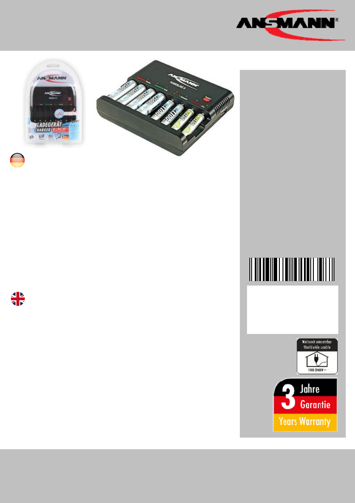 > Charging time for Mignon AA 1000mAh: 2.4h