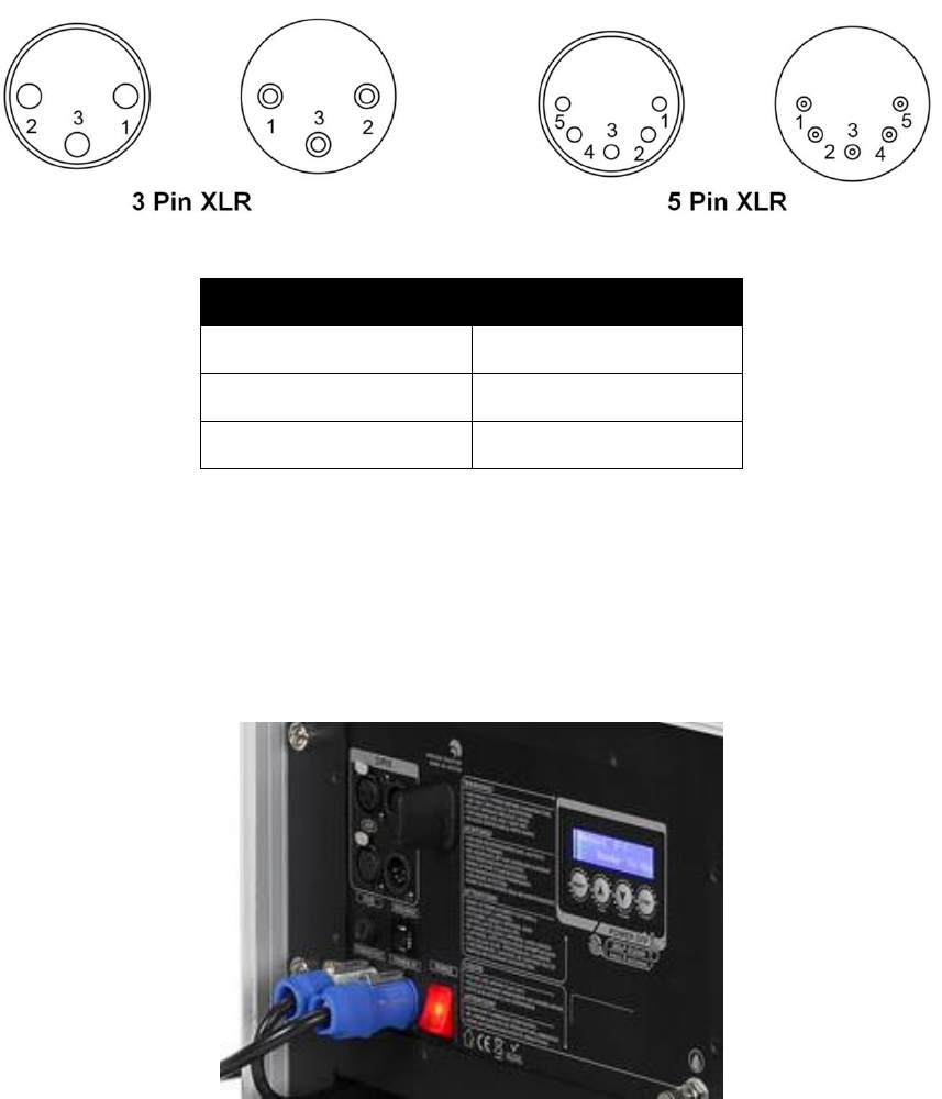 machines in the DMX chain. The machine uses a 3-pin or 5-pin XLR connector for DMX