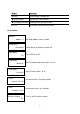 Button Function [MENU] Scroll through setting menu ▲ [UP]/[TIMER] Up/Activate Timer function ▼ [DOWN]/[VOLUME] Down/Activate Volume function [STOP] Deactivate Timer/Volume function Control Menu DMX512 Address: 1 Set DMX address from 1 to 504 Stand Alone Set Master Color Mode On Set machine as Master of Slave unit Turn LED On or Off Color Mode Marco:01 Set LED output color from macro 1 to 10 Color Mode Chase:01 Timer Set LED chase from 1 to 15 Set interval from 15 to 360 seconds Interval
