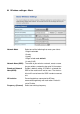 Wireless Settings > Security Select a SSID to start configuration Choose one of the following mode for data protection: Disable OPENWEP SSID choice Security Mode WPA-PSK WPA2-PSK WPA Algorithms Pass Phrase Key Renewal interval WPAPSKWPA2PSK (default) TKIP AES TKIPAES Setup password Enter the amount of time before the group key used for broadcast and multicast data is changed (3600 is default) Administration > Management Account Password Change login account name (default is admin) Change login p