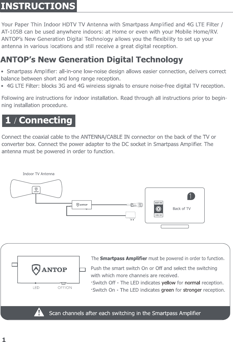 Paper Thin Indoor HDTV Antenna Smartpass Amplified