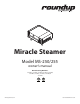 RE AD Y Miracle Steamer Model MS-250/255 owner’s manual Manufacturing Numbers: 9100430, 9100435, 9100436, 9100437, 9100438, 9100440, 9100460, 9100462, 9100466, & 9100468 www.ajantunes.com P/N 1010455 Rev.