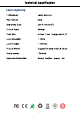 Technical Specification Laser engraving Technology: Laser engrave File Format: bmp Engraving Size: 220X140 (mm?) Picture Type: bitmap Pixel Size: mm (suggested 0.1) Laser Intensity: 1-100% Laser Height: 1-100mm Picture Mirror: Suggest to keep default value Rated power: 1500mw Supported Materials: Wood, leather, paper, etc.