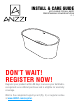 INSTALL & CARE GUIDE APPLICABLE FOR ALL ANZZI FREESTANDING SOAKER BATHTUB V2.5 DON’T WAIT! REGISTER NOW! Register your product within 90 days to ensure your bathtub is recognized as an official purchase and is eligible for warranty coverage. Mail in the completed registry card (Pg. 2) or register online at www.ANZZI.com/register.