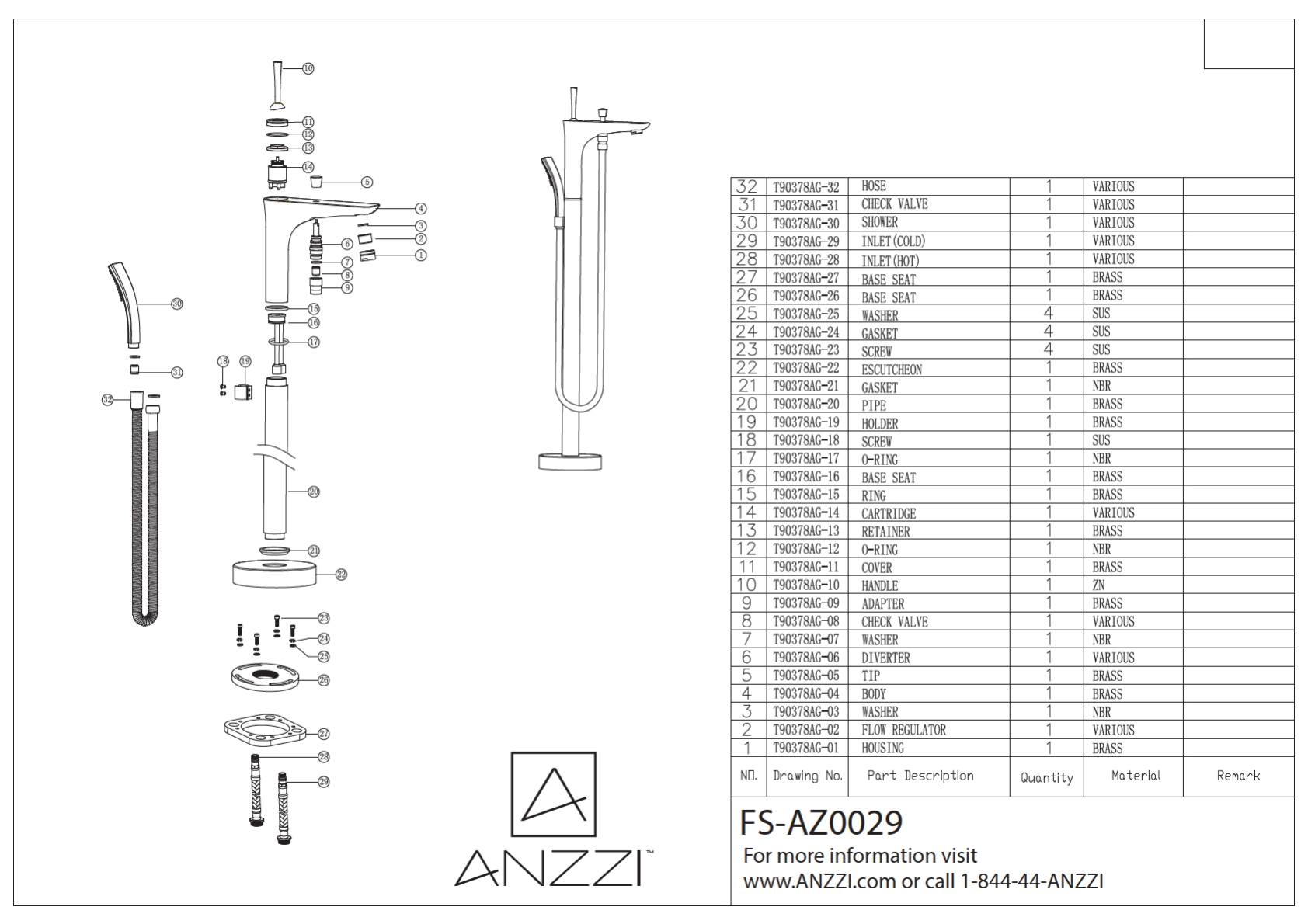 Maple 67 in. Acrylic Flatbottom Non-Whirlpool Bathtub in White with Kase Faucet in Brushed Nickel