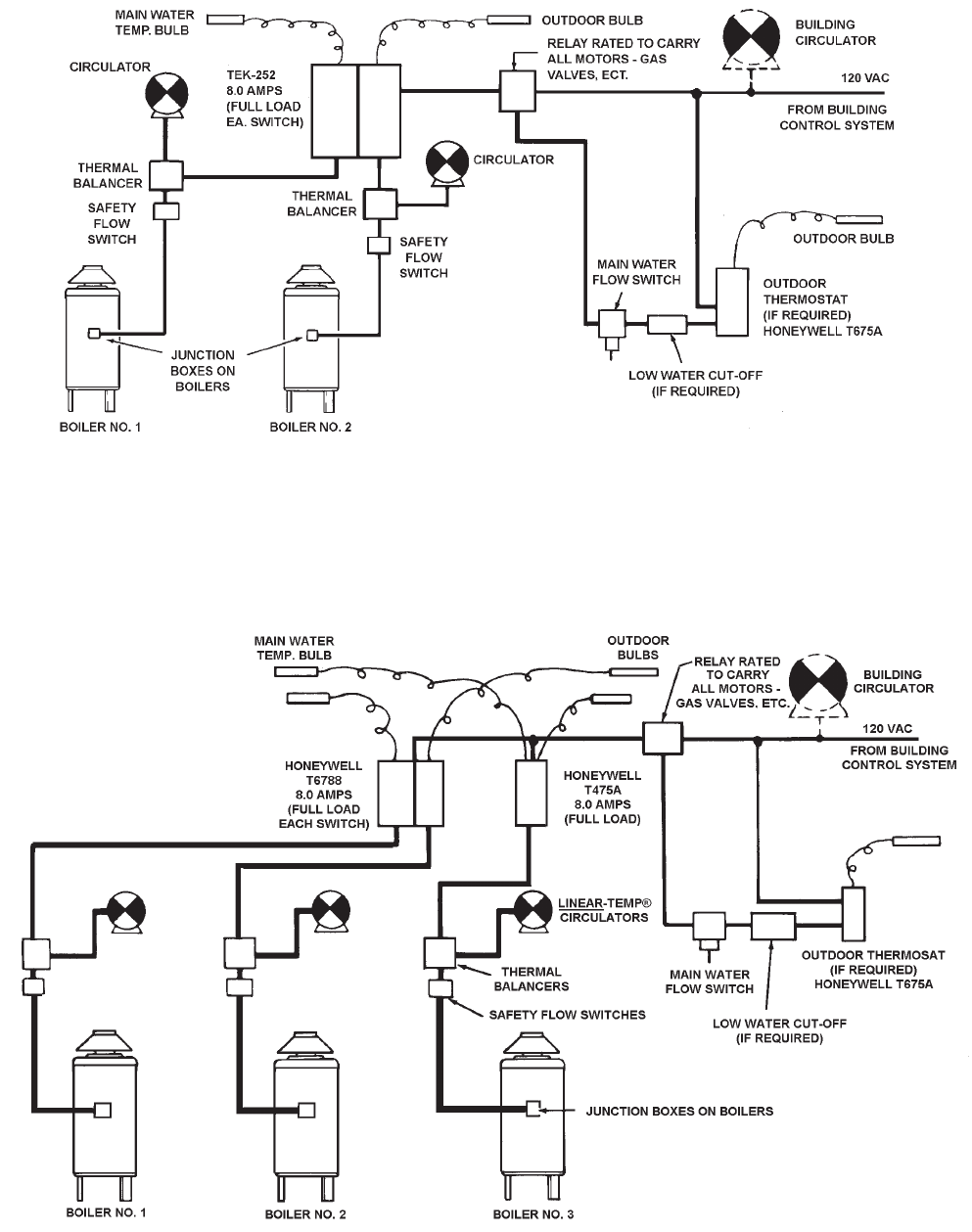 CONTROL APPLICATION DIAGRAM - TWO BOILER LINEAR-TEMP® INSTALLATION WITH TWO CIRCULATORS