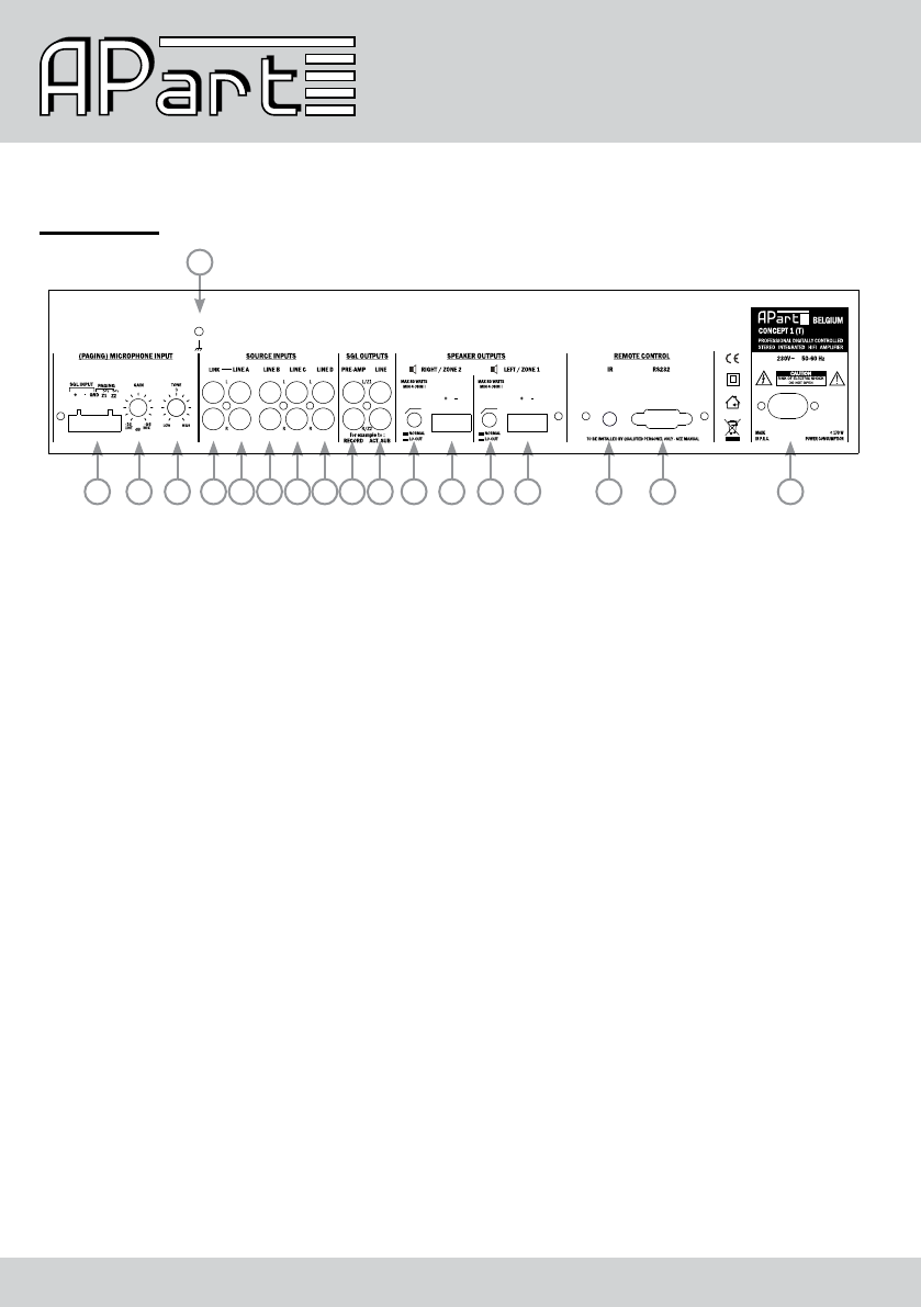 1) Microphone input: connect your (paging) microphone on this euroblock connector, connect the signal