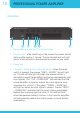 PROFESSIONAL POWER AMPLIFIER Safety first! • aution! This professional device needs to be installed by C qualified personnel only. • P lease check the carton box for any kind of damage on reception of the goods. In case of a damaged carton, please contact your dealer before opening the carton. • ! !!! Danger !!!! Exposure to high sound levels may cause a permanent hearing loss.
