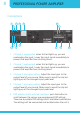 PROFESSIONAL POWER AMPLIFIER Connections 1 3 4 5 6 2 11 13 10 12 7 8 9 14 1. C hannel 2 overload led: when this led lights up, you are overloading the input. Lower the input signal immediately to prevent the amplifier from shutting down. 2. C hannel 1 overload led: when this led lights up, you are overloading the input. Lower the input signal immediately to prevent the amplifier from shutting down. 3. C hannel 2 input gain setting.