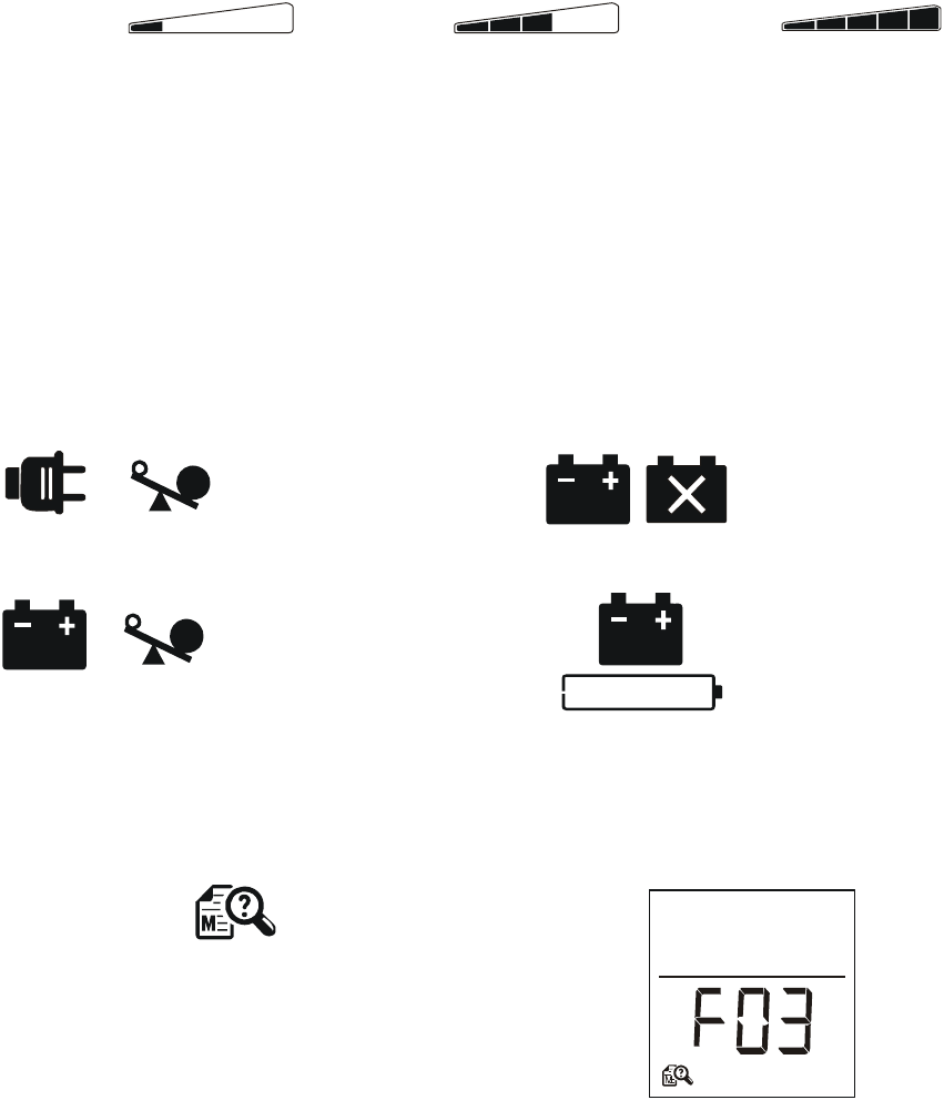 - En mode EN LIGNE, présence d'une batterie défectueuse, signalée par l'icône qui clignote.