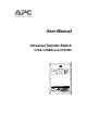 About This Manual Intended Audience This manual provides information for those persons responsible for set up, configuration and operation of the UTS6, UTS6BI and UTS10BI Universal Transfer Switches (UTSs). Information concerning troubleshooting common problems, and how to contact APC Technical Support and/or Customer Service is also provided. This manual is part of a documentation set that also includes the Universal Transfer Switch Site Preparation and Installation Guide (Document No.