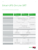 apc.com 7 Smart-UPS On-Line Proven performance with the world’s largest installed base of single-phase, double-conversion products. Rackmount and tower SRT 2.2 kVA – 10 kVA Additional features Embedded network management card with environmental monitoring (5 kVA – 10 kVA models) Remote monitoring and control of the UPS and the environment via Ethernet connection while freeing up the SmartSlot so customers can add accessories for additional communication options.
