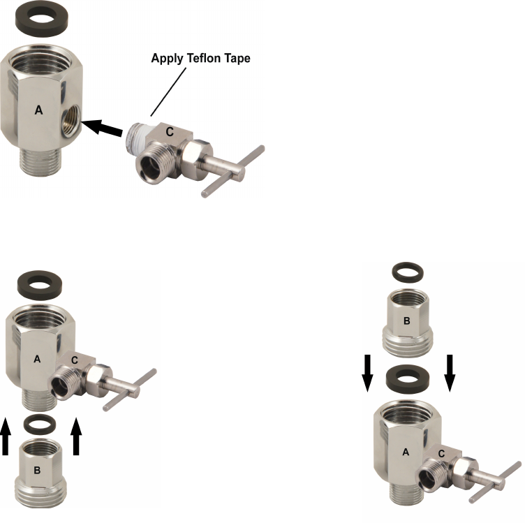 Attach the needle valve (C) to water supply adapter (A). Please apply 5-6 wraps of