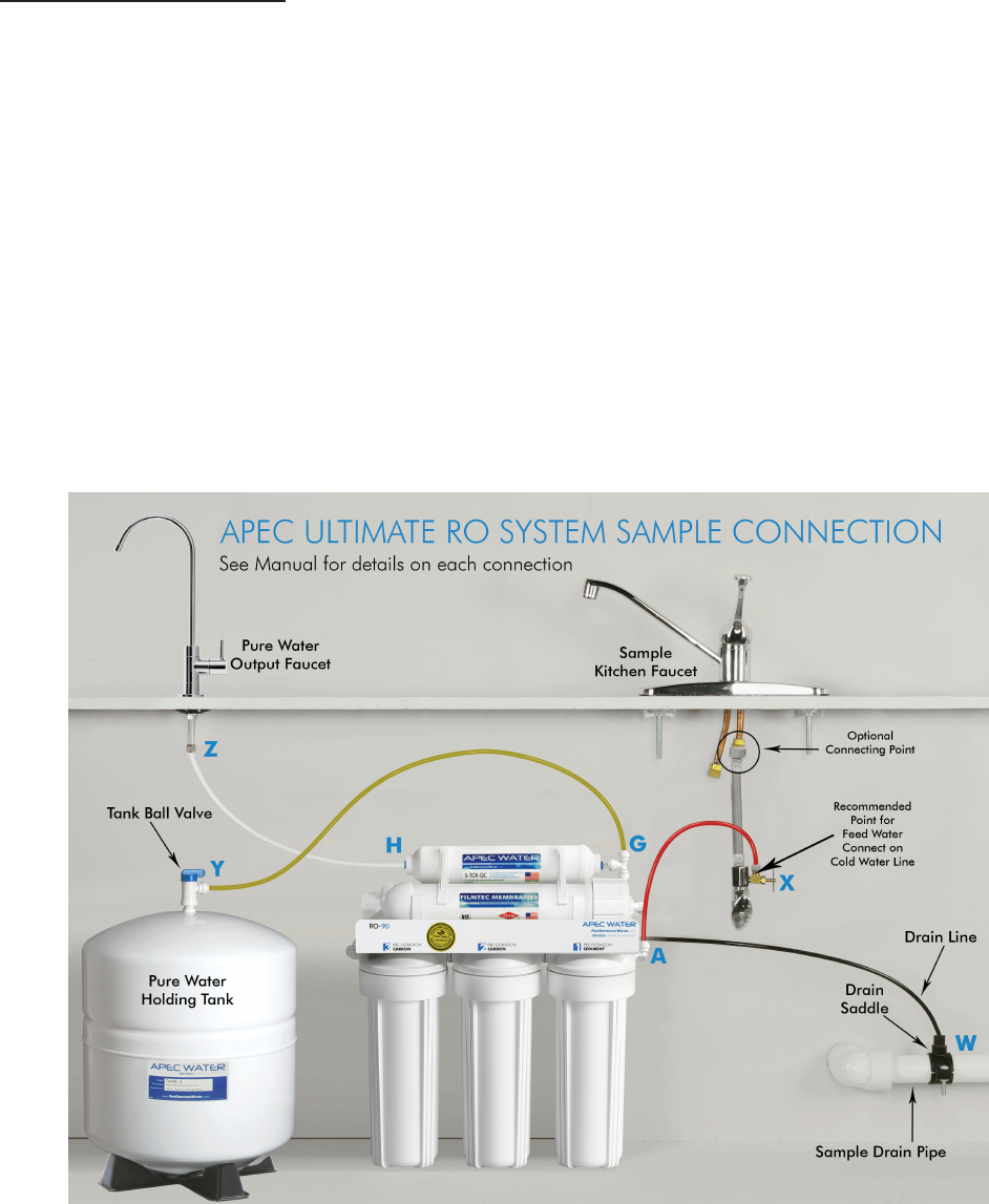 Point A to X: Connect RO to COLD water supply — Red tubing.