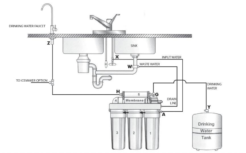 Tubing color: Red tubing. Connect the RED tubing to the Feed Water Needle Valve.