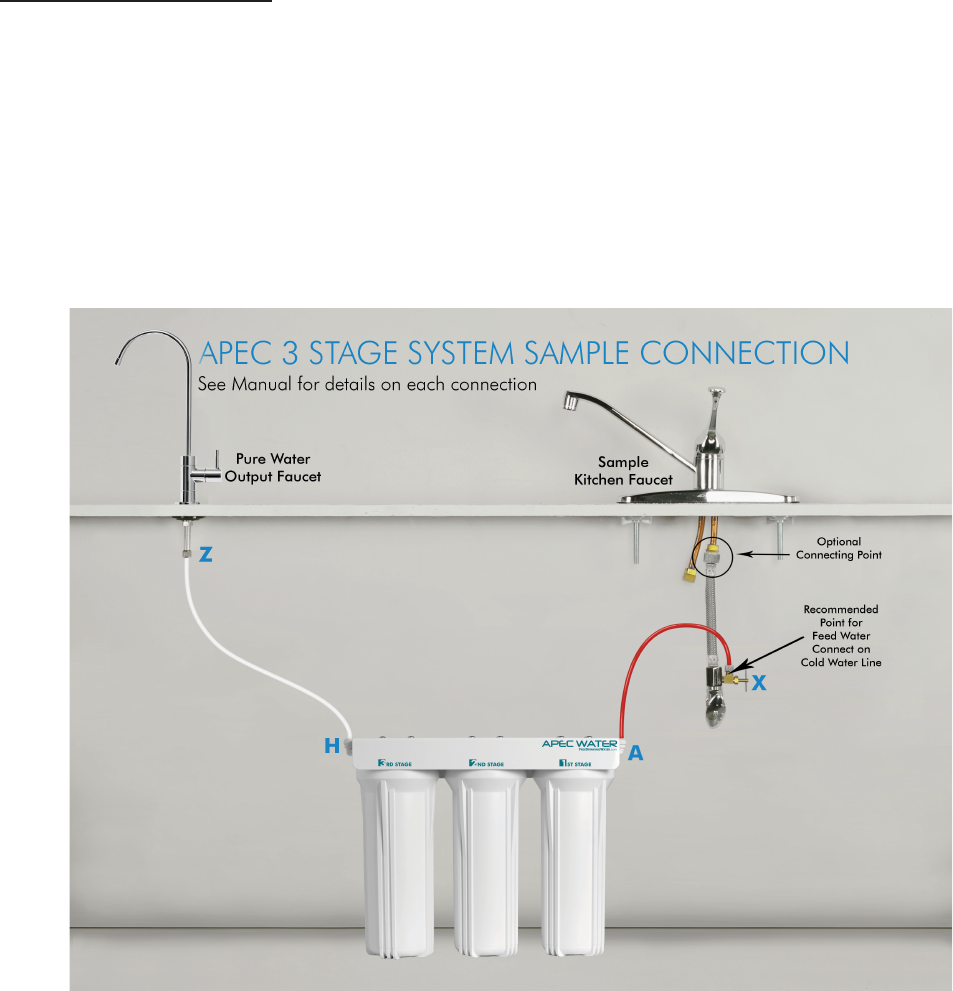 Point A to X: Connect system to COLD water supply — Red tubing.