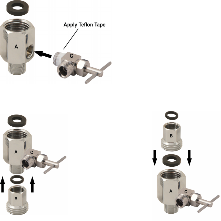 Attach the needle valve (C) to water supply adapter (A). Please apply 5-6 wraps of