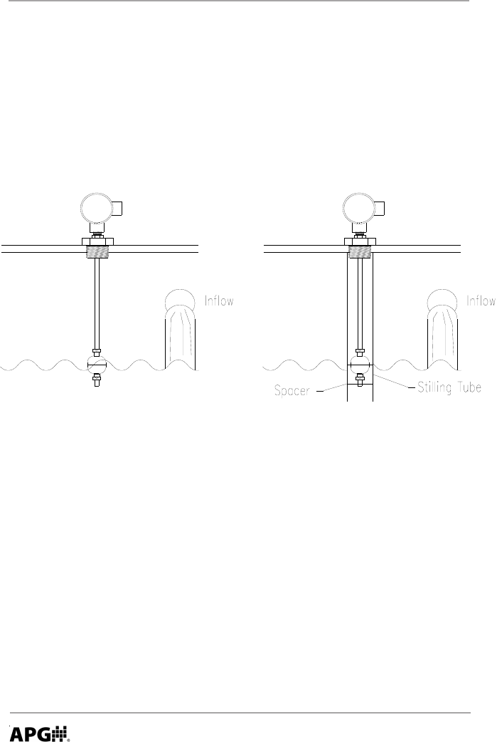stilling tube is used, drill vent holes in the tube and use a spacer to assure the