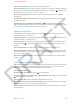 APPLE CONFIDENTIAL Messages settings Go to Settings > Messages to set options for Messages, including: •• Turning iMessage on or off •• Notifying others when you’ve read their messages •• Specifying an Apple ID or email address to use with Messages •• SMS and MMS options •• Showing the Subject field •• Showing the character count T F A R Manage notifications for messages. See UNRESOLVABLE CROSS-REFERENCE on page ###. Set the alert sound for incoming text messages.