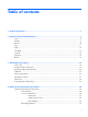 Table of contents 1 Product description ........................................................................................................... 1 2 External component identification ..................................................................................... 8 Front ....................................................................................................................................... 8 Display .....................................................................................