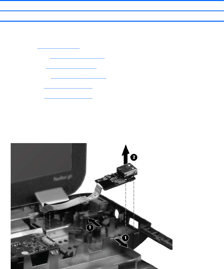3. Lift the USB board (2) straight up to remove it from the computer.