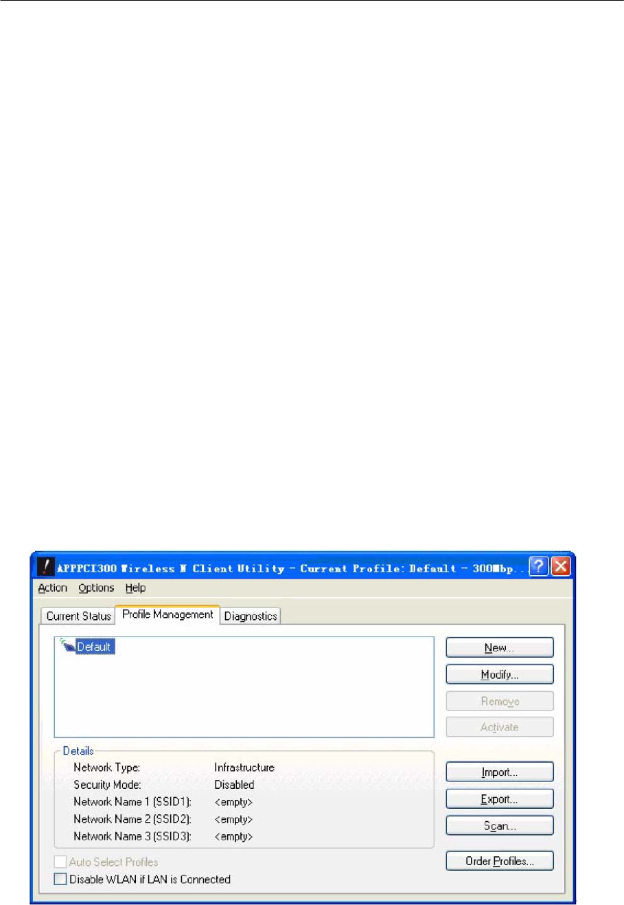 erscheint (s. Bild 3-1). Der Profile Management Screen stellt Ihnen auch Tools zur Verfügung: