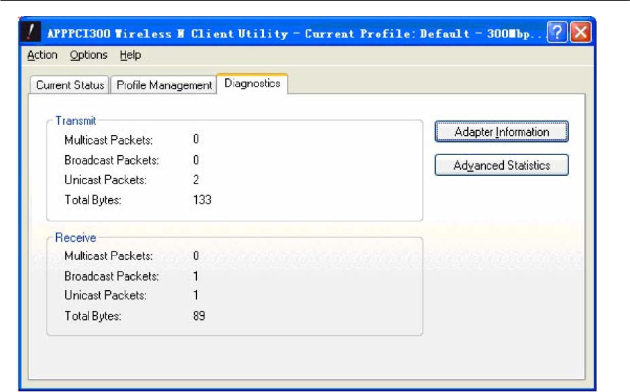 Das Fenster Advanced Statistics zeigt den Empfang und die Übertragung statistischer