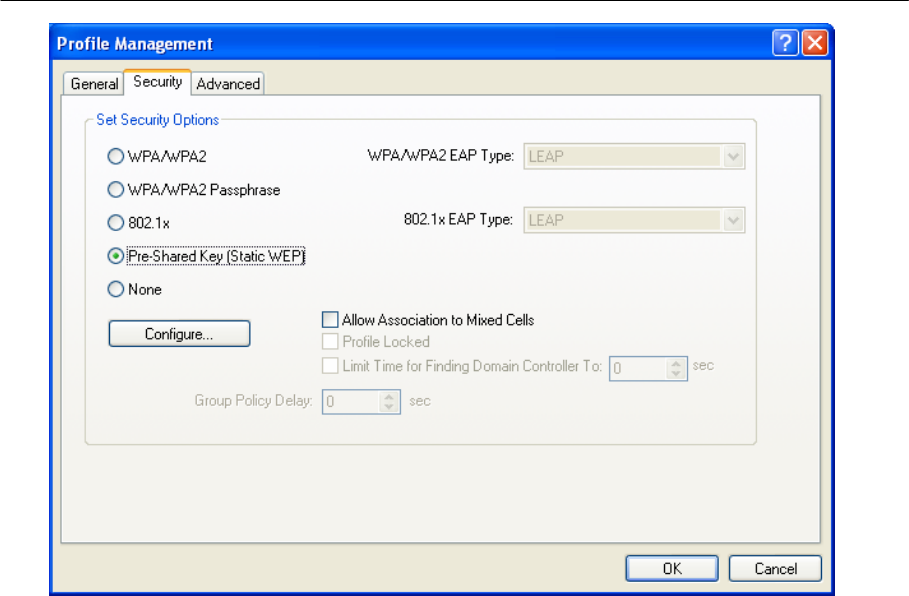 sia selezionato nella linguetta Security. Per completare la configurazione di encriptazione WEP,