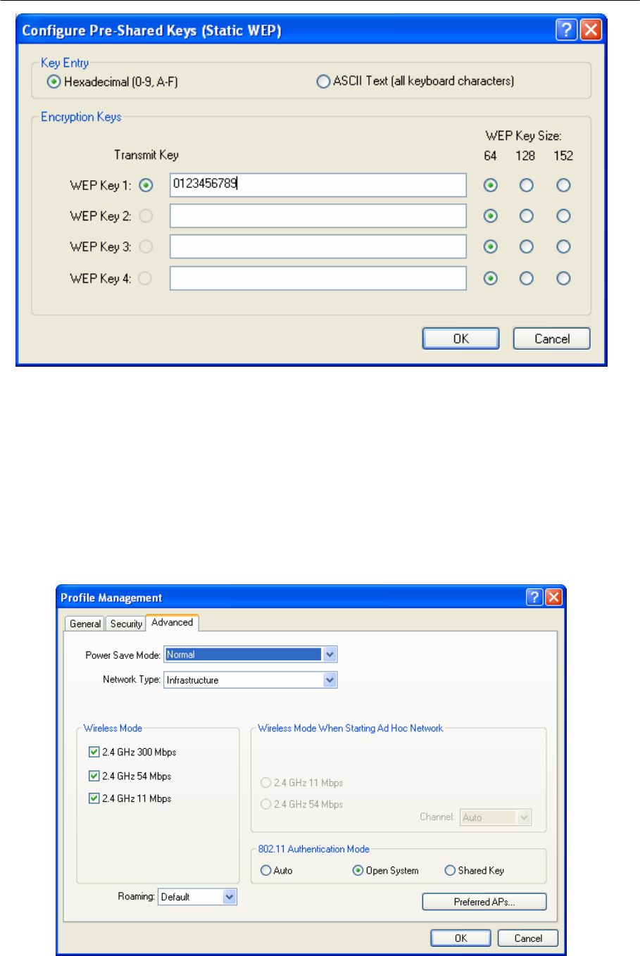 seleccionar a opção de segurança apropriada e configurar a chave exacta como necessário.