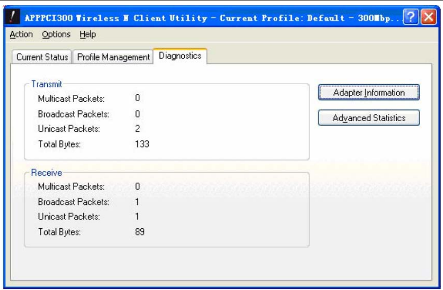 El botón Advanced Statistics muestra información estadística sobre la transmisión/recepción