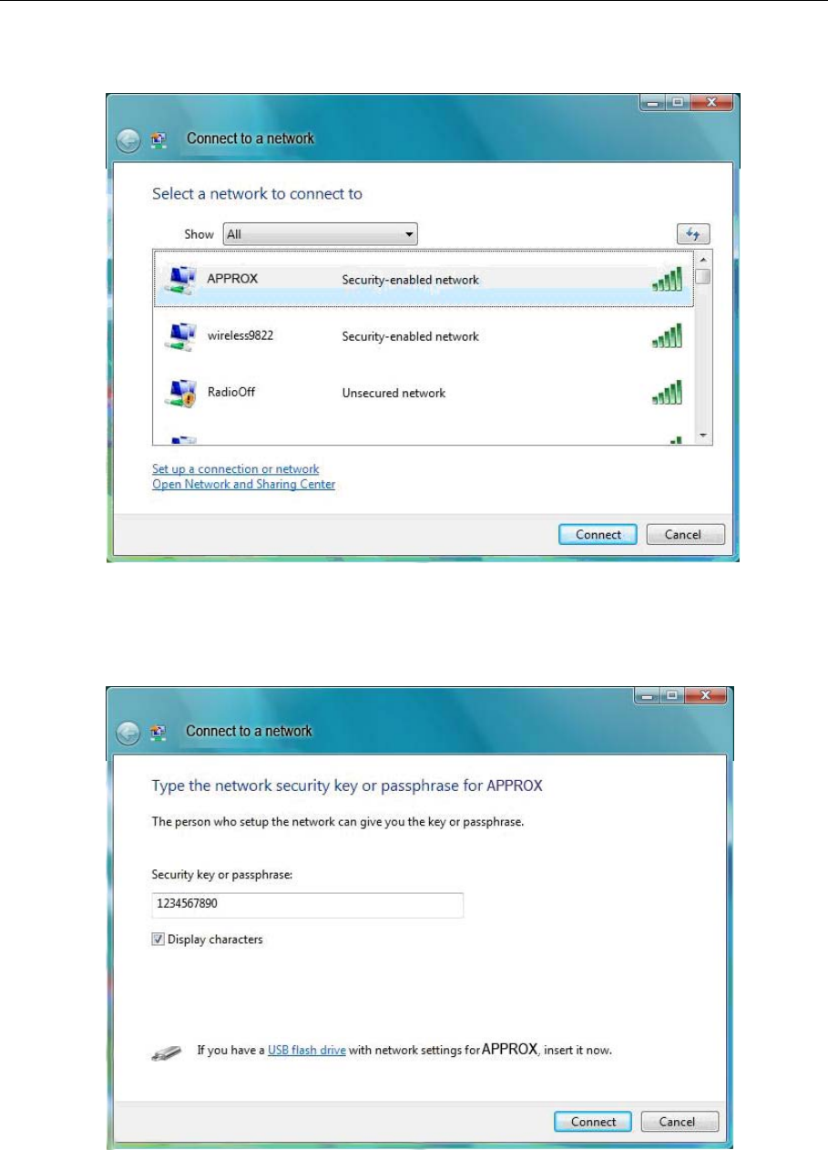 SSID de su punto de acceso, por ejemplo APPROX. Haga clic en Conectar.