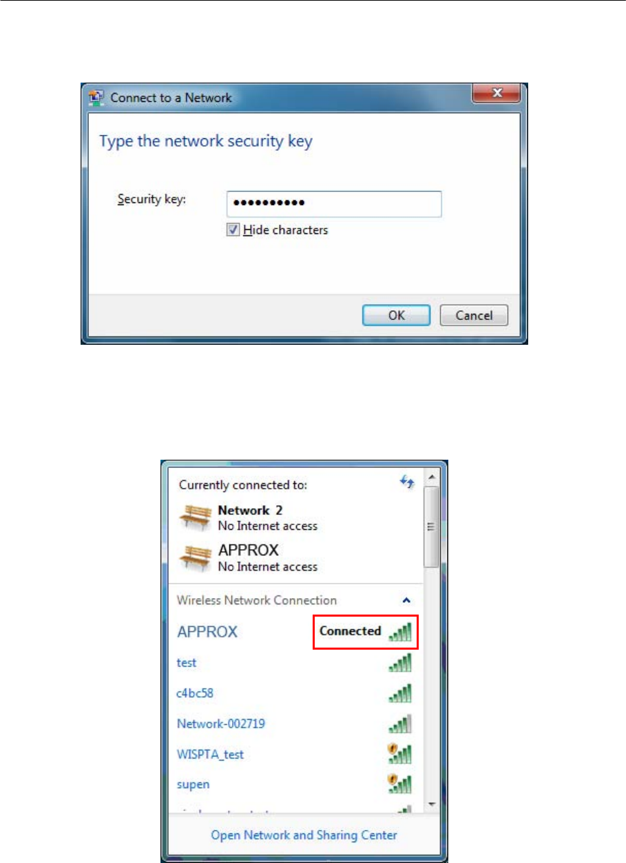 3. If the key entered is correct, you will successfully connect to the network as shown in