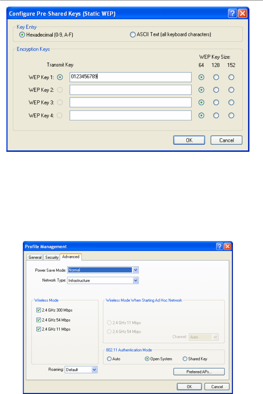 pouvez sélectionner l'option de sécurité appropriée et configurer la clé exacte dont vous avez