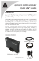 Apricorn DVR Expander Quick Start Guide INTRODUCTION Is your DirecTV DVR running out of space? Apricorn’s DVR Expander is the perfect solution for adding hundreds of hours of recording time to your DVR instantly. Setting up the DVR Expander to work with your DirecTV receiver couldn’t be easier. With its dual eSATA / USB 2.
