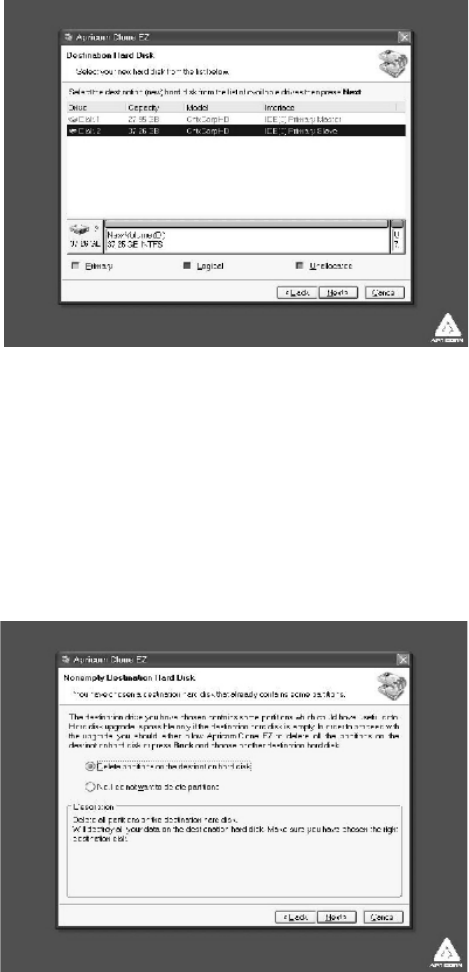 10. The “Nonempty Destination Hard Disk” screen will appear when you