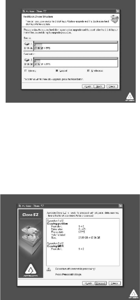 hard disk layout after the cloning process. Click