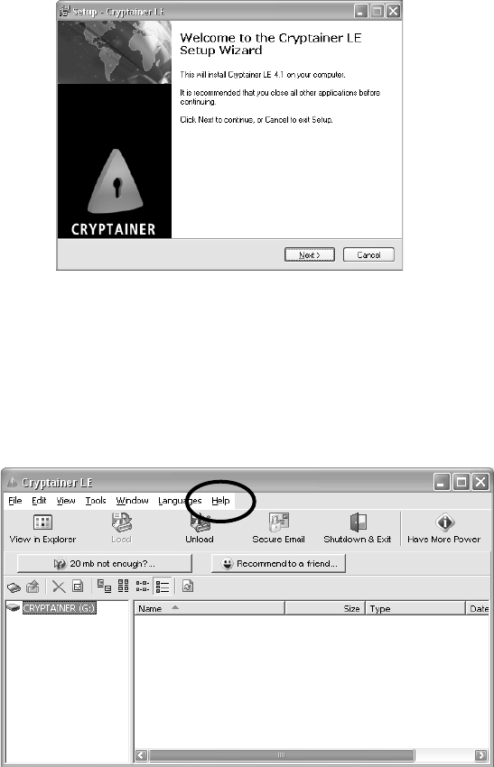 1. Insert Cryptainer/Second Copy CD into CD-ROM drive.