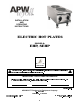 R INSTALLATION AND OPERATING INSTRUCTIONS ELECTRIC HOT PLATES MODELS: EHP, SEHP 24 Hour Toll Free Service Hot Line: 1-800-733-2203 ! WARNING: Improper installation, adjustment, alteration, service or maintenance can cause property damage, injury or death. Read the installation, operating and maintenance instructions thoroughly before installing or servicing this equipment. ! IMPORTANT FOR FUTURE REFERENCE Please complete this information and retain this manual for the life of the equipment.