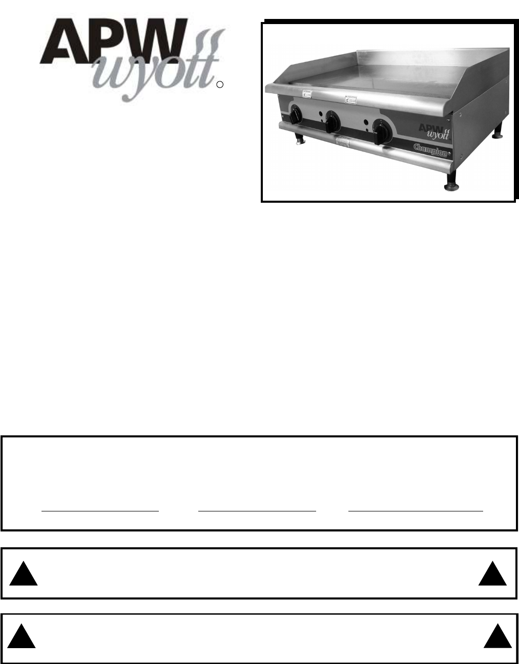 - APW WYOTT Foodservice Equipment Company Gas Griddles INSTALLATION AND OPERATING INSTRUCTIONS GGT-18H, GGT-24H, GGT-36H, GGT-48H, GGM-18H, GGM-24H, GGM-36H, GGM-48H